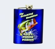 7 oz. Stainless Flask - Drinking Buddies - Fishing Problem