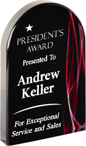Premier Acrylic is the ultimate way to recognize the highest achievement. Velvet Acrylics are self-standing, 1 inch thick and are individually boxed. They come in multiple sizes, 4 styles- Round, Wave, Star and Arch, and 2 colors- Blue and Red. They are easily customizable by either rotary engraving or laser engraving.